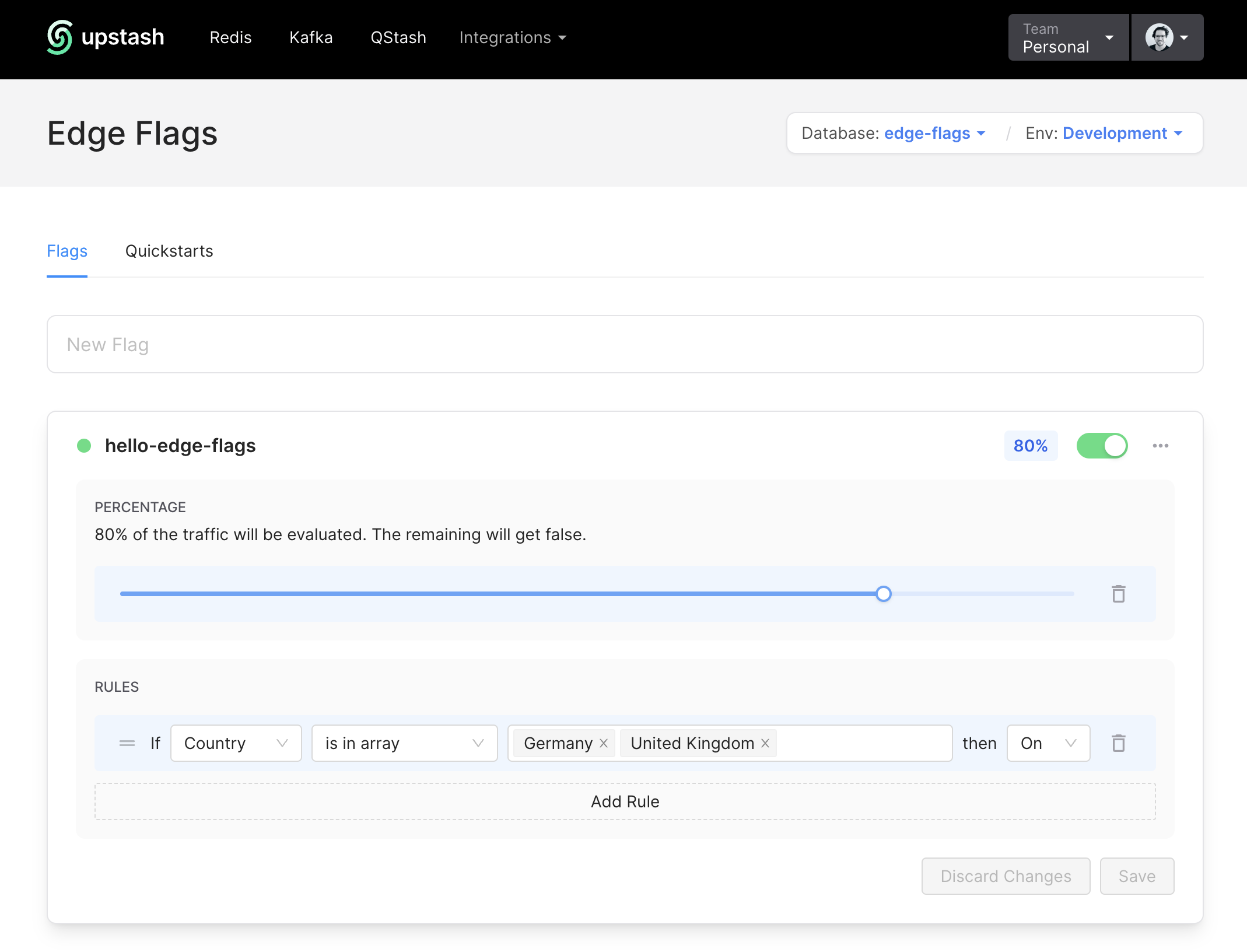 Edge Flags, as the name implies, is a feature flag solution built to run at the edge. It is using Upstash Redis, a globally replicated serverless Redis service, to store configuration and is designed to work with Next.js and Vercel. We want to support other frameworks in the future, so if you have a suggestion, please let us know!