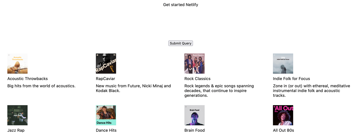 Click the Start querying Spotify button. Now we need to run netlify-cli with following command in the project directory.